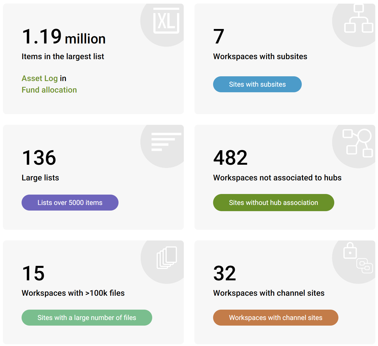 Fastest growing sites by size or file count
