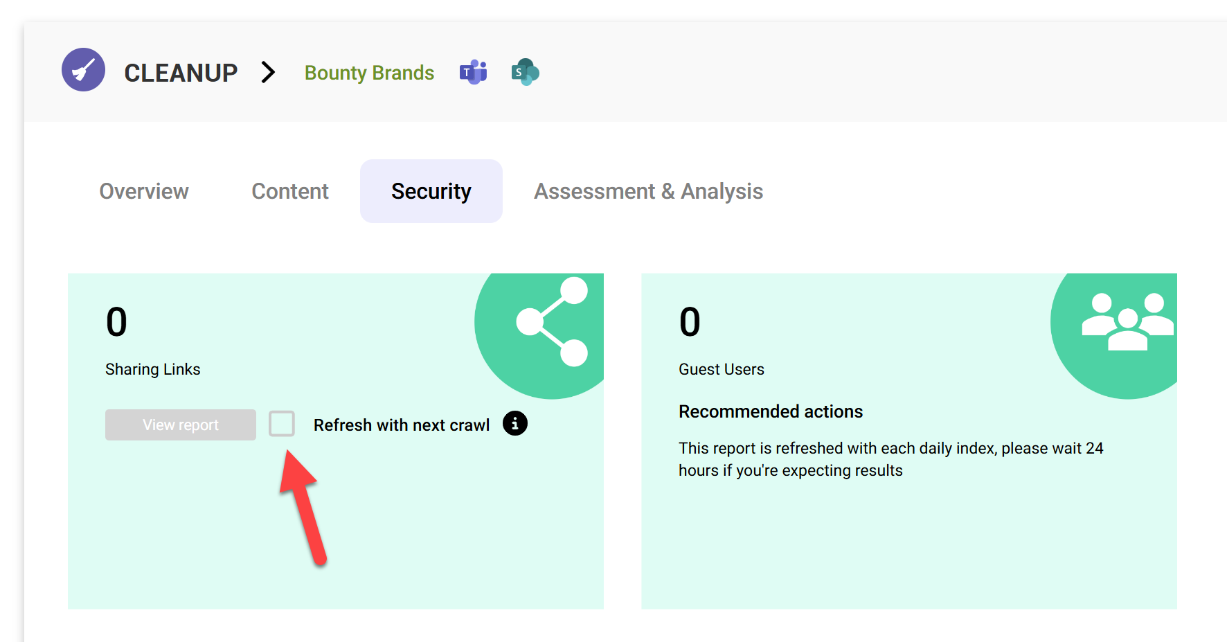 In the site you've selected to clean up, use the Security tab to view the report.